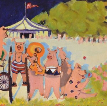 "2 Sides of a Square" consisted of a series of paintings honoring our community of critters, keystone species and Learned Pigs
